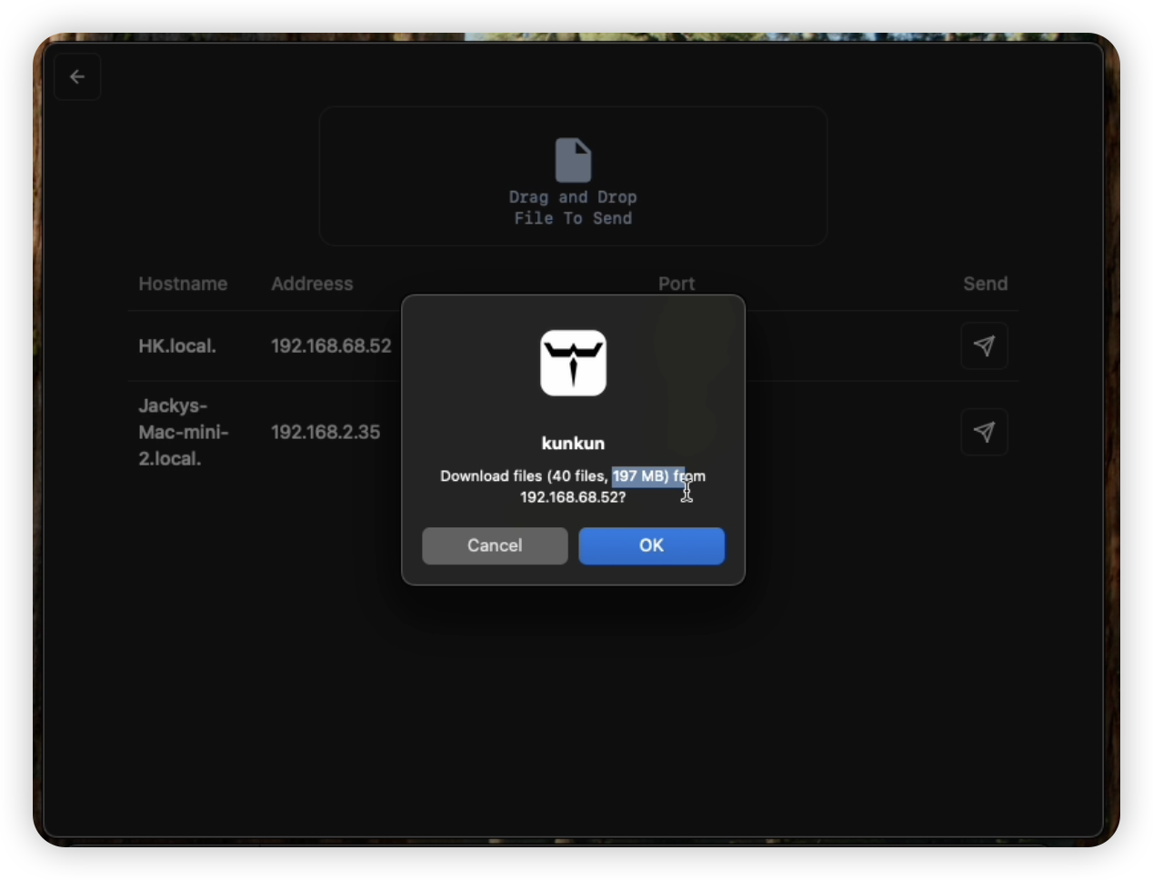 - File Transfer (send files to other devices in local network with Kunkun installed)